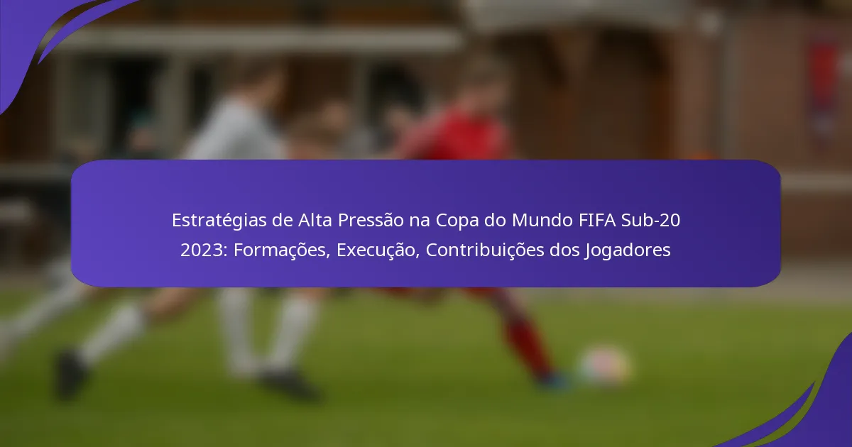 As estratégias de pressão alta tornaram-se uma característica definidora do futebol moderno, particularmente evidente na Copa do Mundo Sub-20 da FIFA 2023. As equipas utilizam formações específicas para aplicar uma pressão intensa sobre os seus adversários, visando recuperar a posse rapidamente e interromper o seu jogo de construção. Esta abordagem tática não só melhora a solidez defensiva, mas também cria oportunidades de golo imediatas através de movimentos e posicionamentos coordenados dos jogadores.