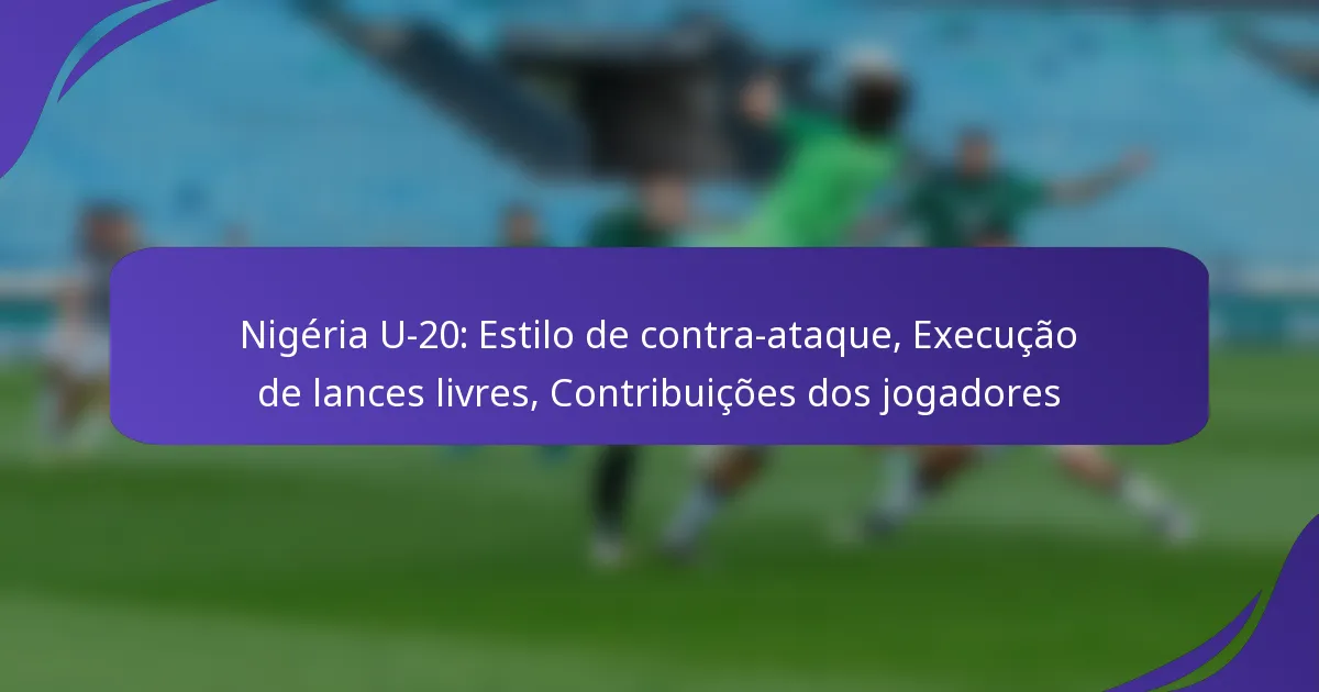 A equipa da Nigéria sub-20 apresenta um estilo dinâmico de contra-ataque que enfatiza transições rápidas da defesa para o ataque, aproveitando os espaços deixados pelos adversários. A execução estratégica de lances de bola parada melhora ainda mais o seu jogo, maximizando as oportunidades de golo durante momentos críticos. As contribuições dos jogadores-chave são essenciais para o sucesso da equipa, com indivíduos a destacarem-se em marcar, assistir e desempenhar funções defensivas, elevando assim o desempenho geral do conjunto.
