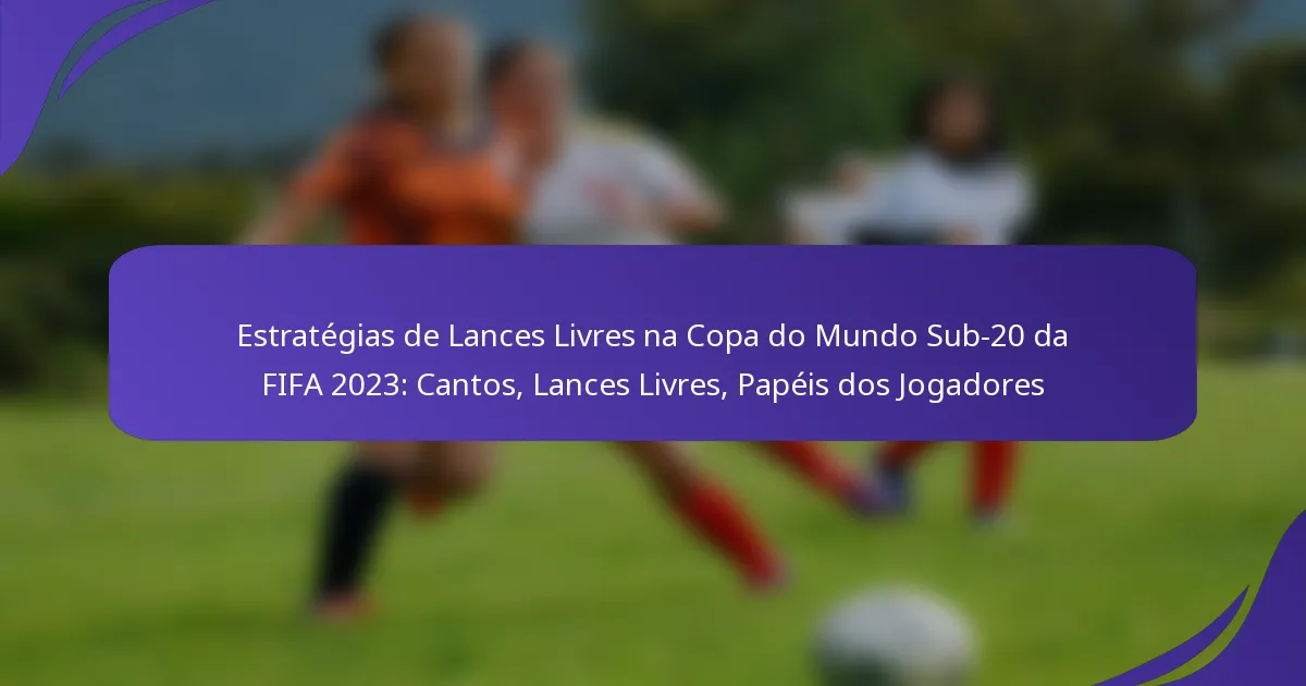 As estratégias de lances livres na FIFA U-20 World Cup 2023 são cruciais para criar oportunidades de golo e influenciar os resultados dos jogos. As equipas empregam várias táticas para cantos e livres, focando nos papéis dos jogadores e nas formações para maximizar a sua eficácia.