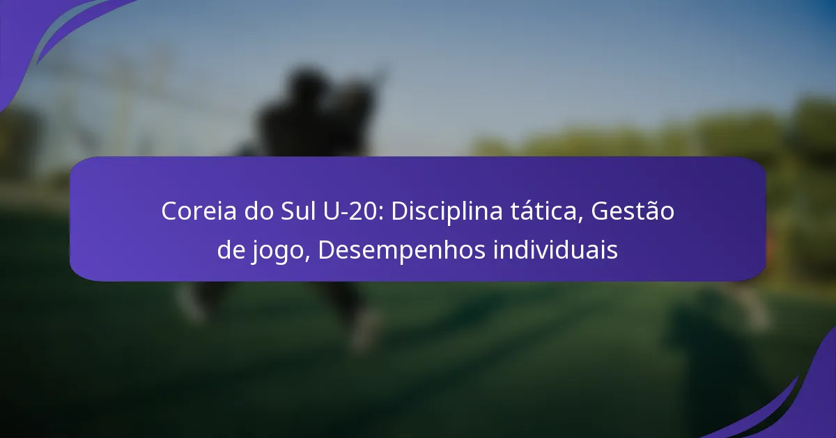 A disciplina tática influencia significativamente o desempenho da equipa sub-20 da Coreia do Sul, garantindo que os jogadores adiram a planos estratégicos. Esta adesão permite à equipa manter a organização, especialmente em situações de alta pressão. Uma abordagem disciplinada ajuda a minimizar erros e melhora a comunicação entre os jogadores, levando a uma melhor coordenação em campo.