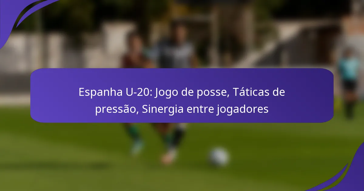A seleção de futebol sub-20 de Espanha apresenta um estilo distinto caracterizado pelo jogo de posse, enfatizando o controlo da bola e passes rápidos para criar oportunidades de golo. As suas táticas de pressão focam-se em recuperar a posse rapidamente, aplicando pressão coordenada para desestabilizar os adversários e iniciar contra-ataques. Além disso, a sinergia entre os jogadores é vital, uma vez que o trabalho em equipa coeso e a comunicação eficaz melhoram a execução tática e o desempenho geral em campo.